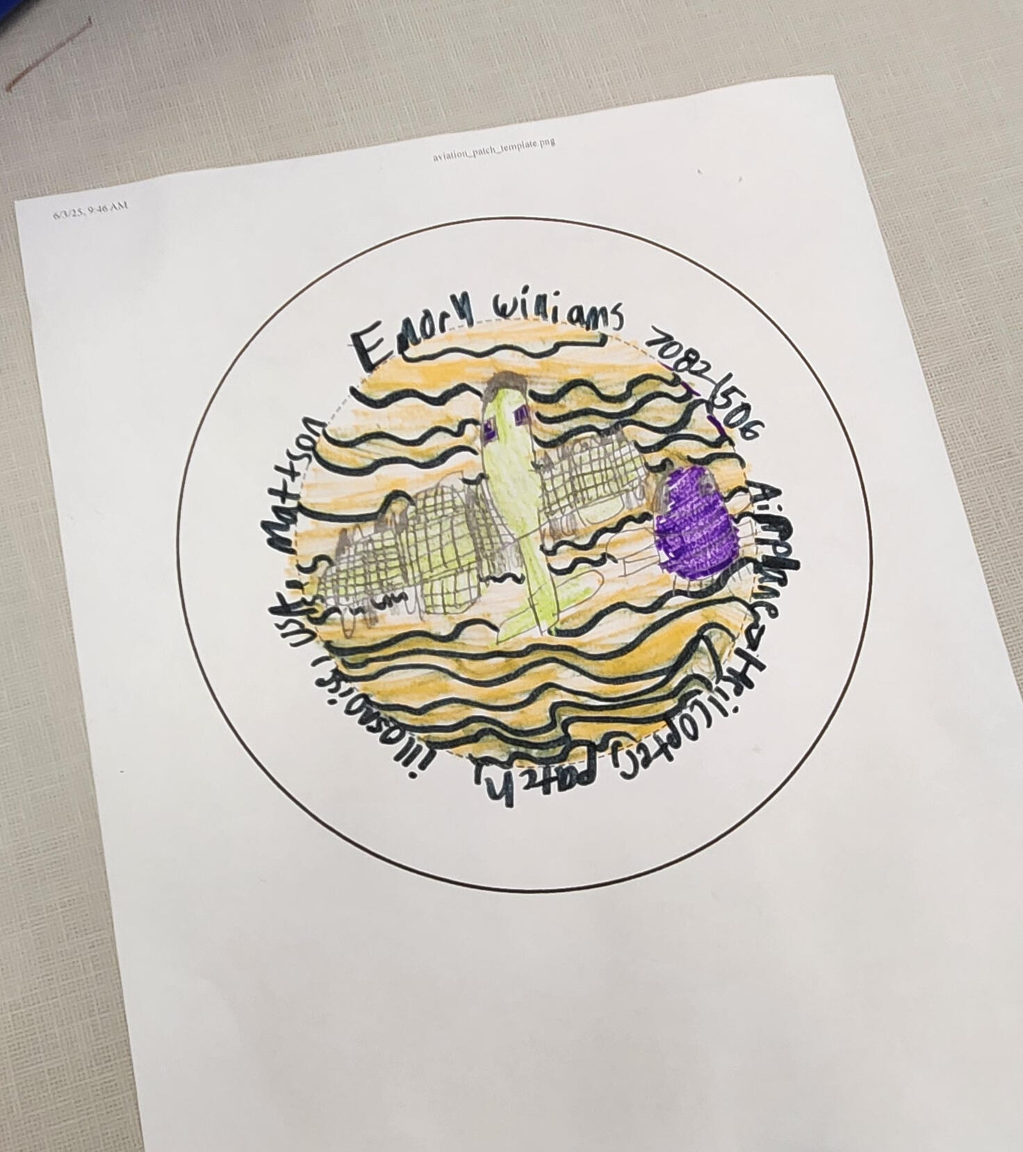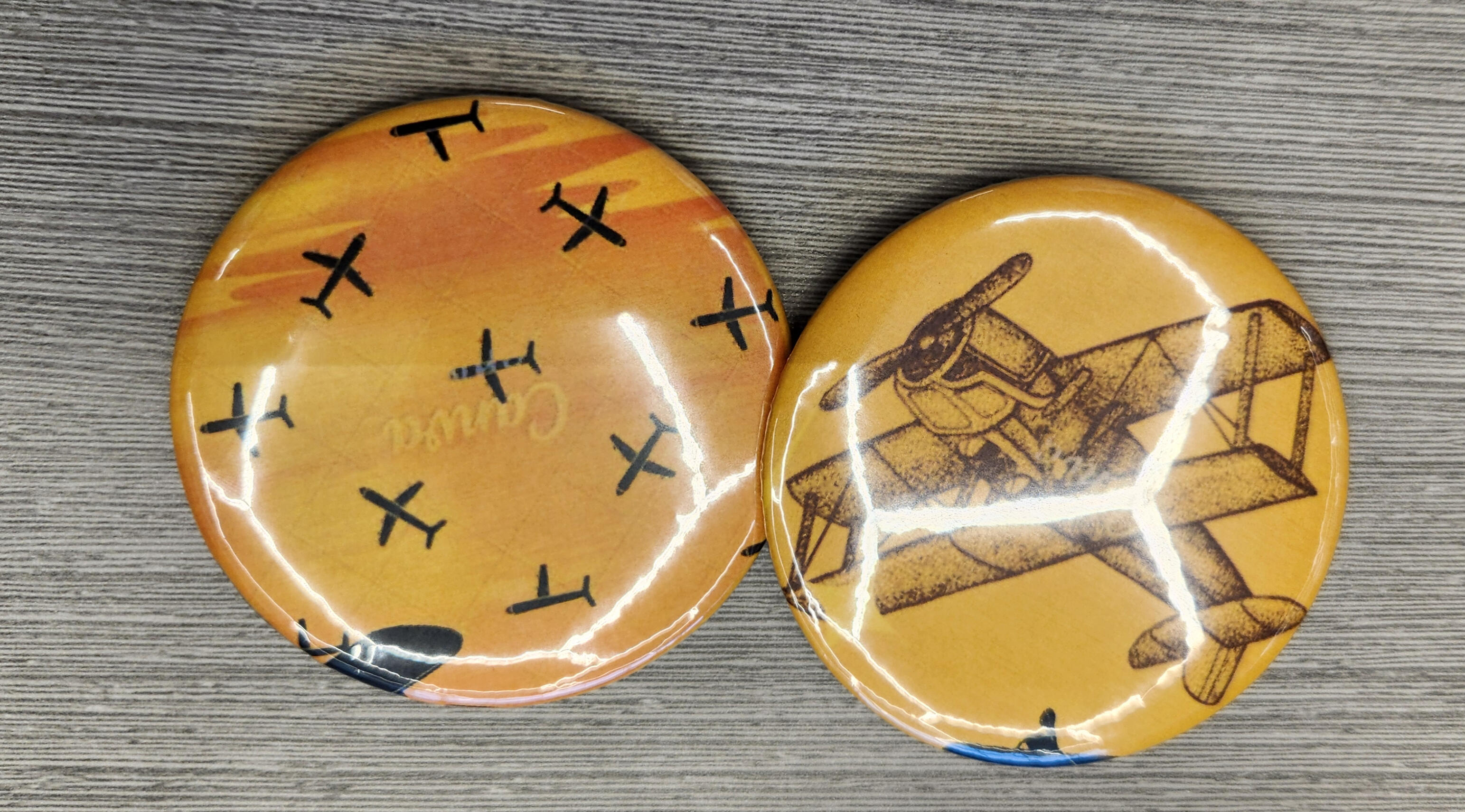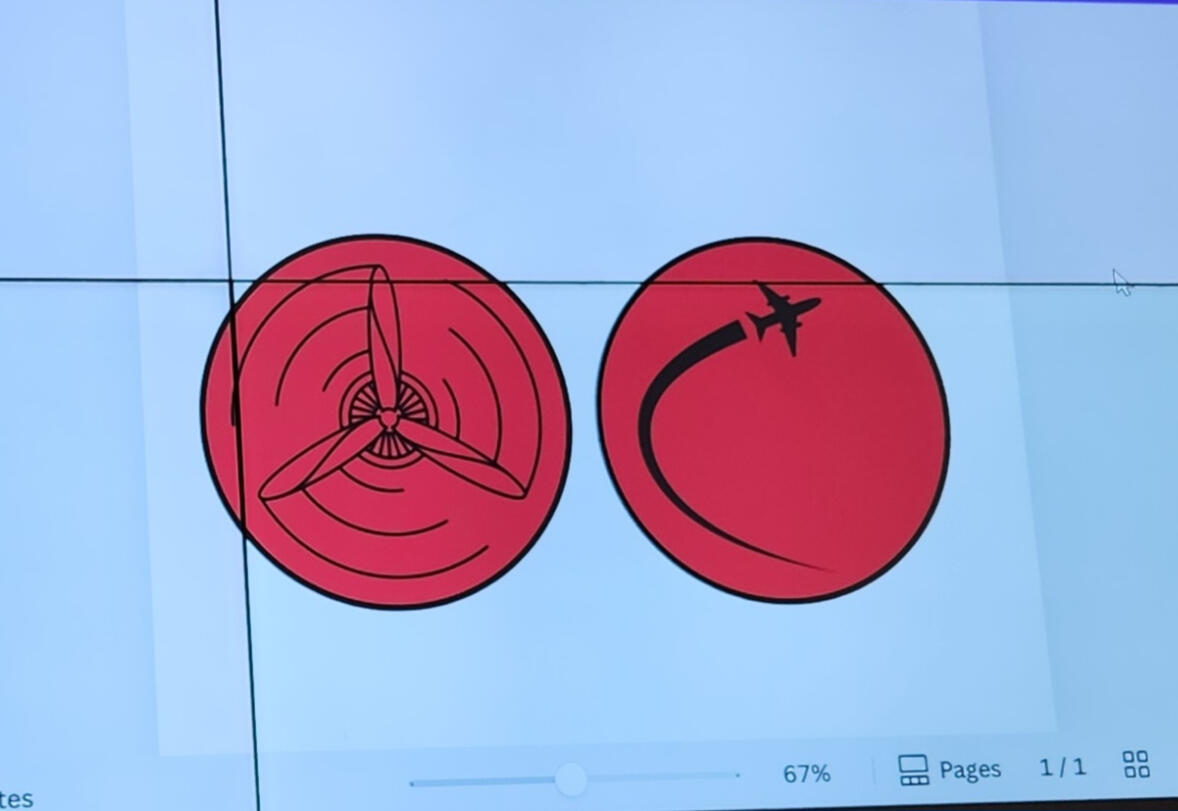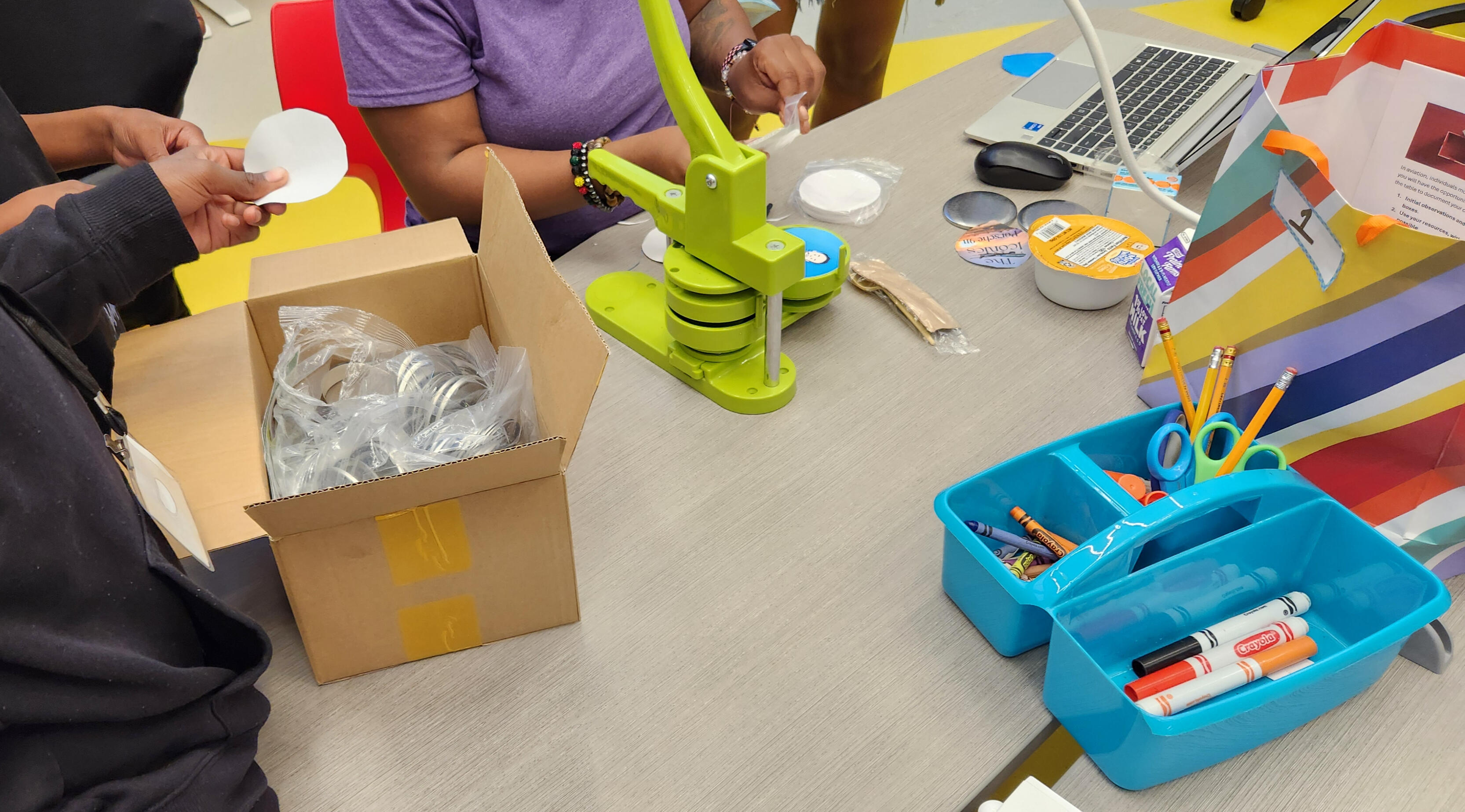Little artists, big dreams. Students design and create their own aviation-themed buttons.