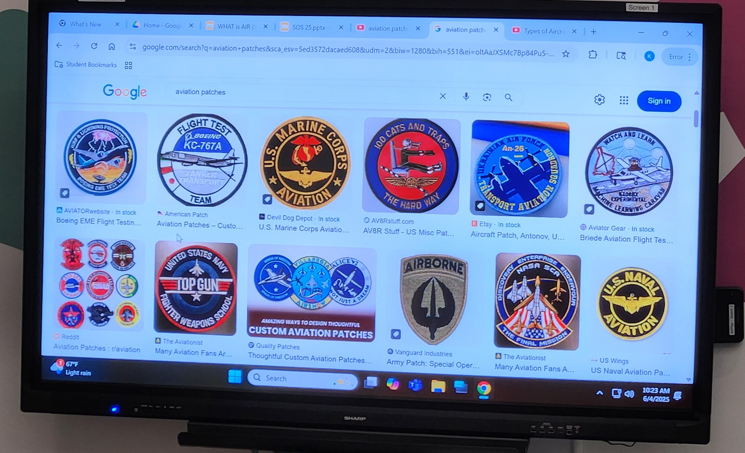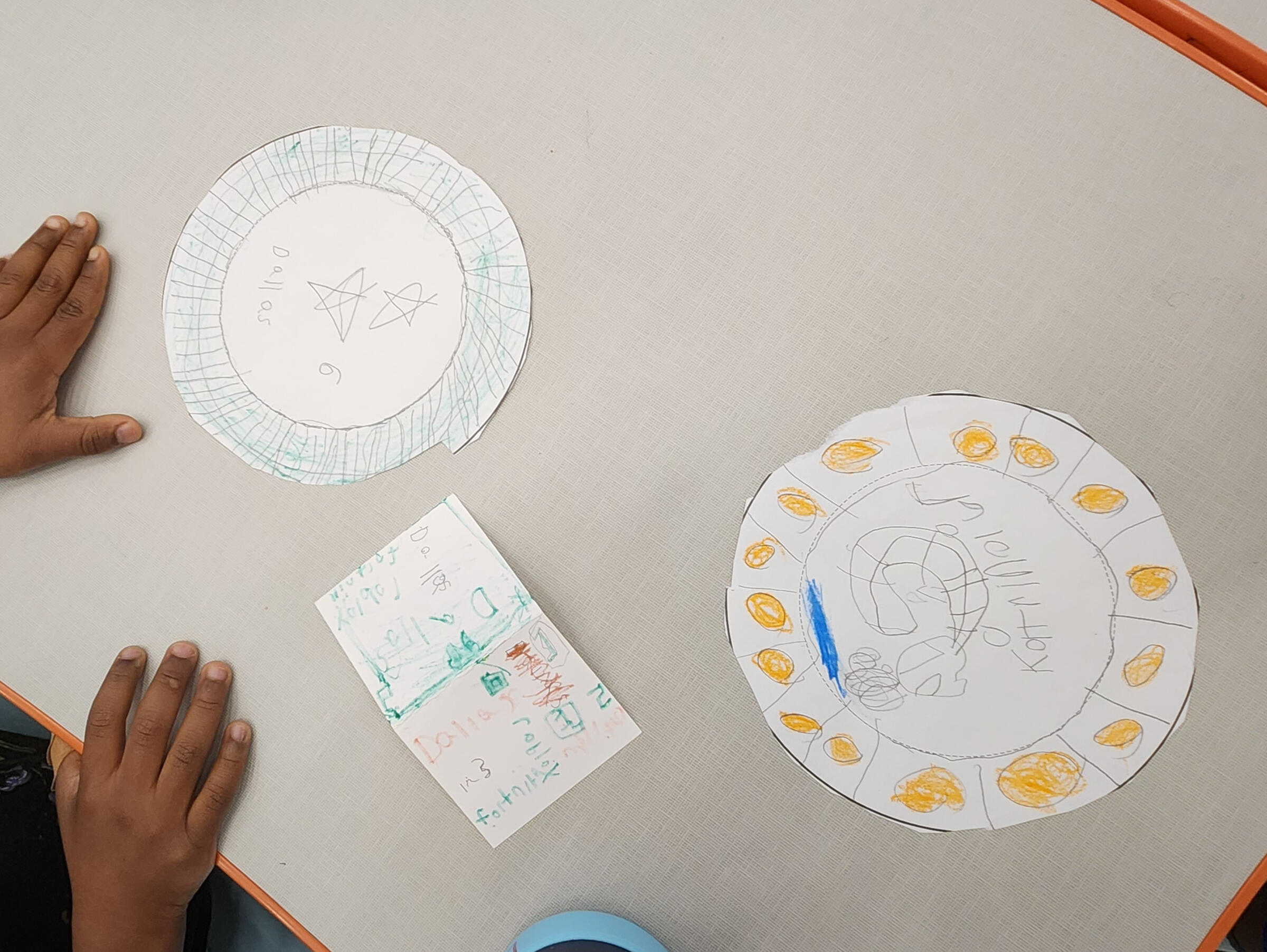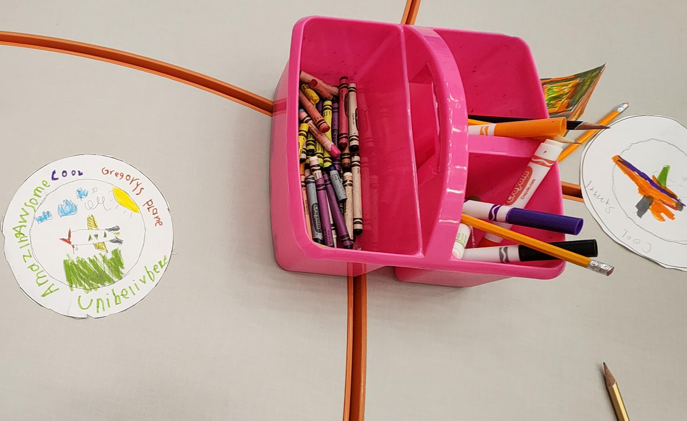 Little artists, big dreams. Students design and create their own aviation-themed buttons.
