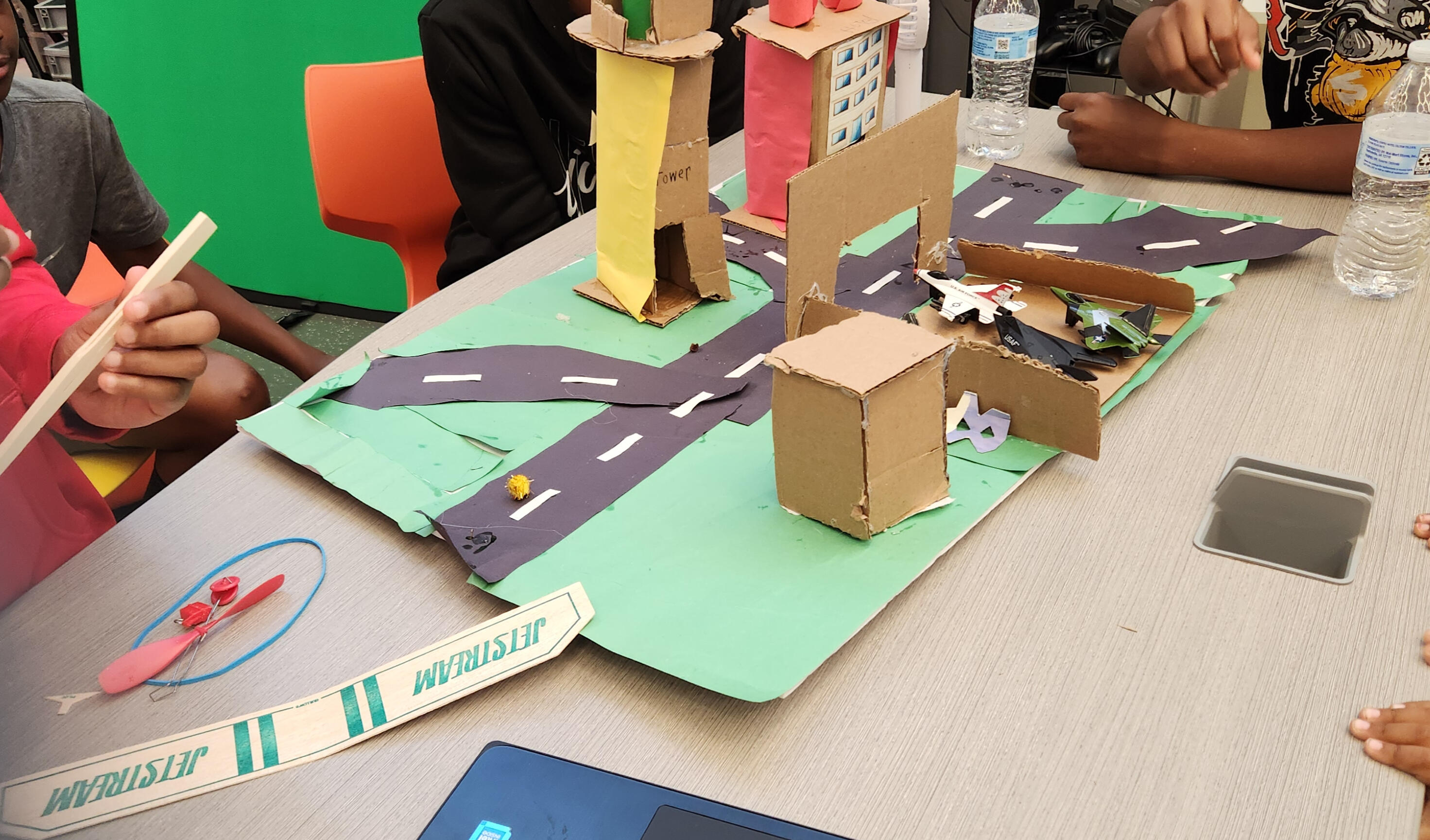 The first step to a big idea. Our campers construct model airports, putting design and engineering principles into action.